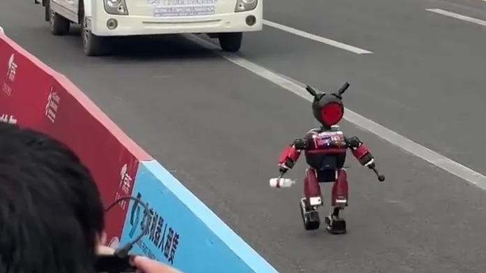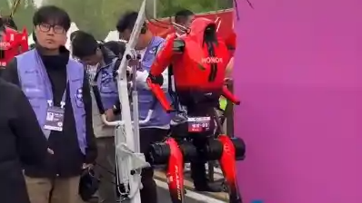 4月19日,在北京亦庄举行的全球首个人形机器人半程马拉松赛场上,荣耀自研机器人“闪电”在冲刺阶段距终点200米处意外摔倒,经工作人员调整后起身完成冲刺,成为首个冲线的机器人选手。