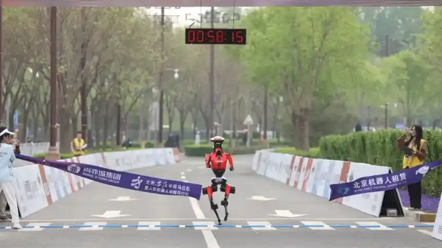 4月19日,在全球首个人形机器人马拉松品牌赛事——2026北京亦庄人形机器人半程马拉松赛场上,齐天大圣队的“闪电”机器人凭借50分26秒(净用时)的成绩(人类半程马拉松世界纪录为56分42秒)获得冠军。